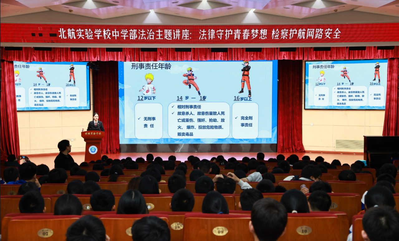 12月25日,海淀区人民检察院王鲁玥检察官受邀走进北航实验学校中学部,聚焦校园欺凌与网络安全两大核心,为全体同学送上一场内容详实的法治宣讲。