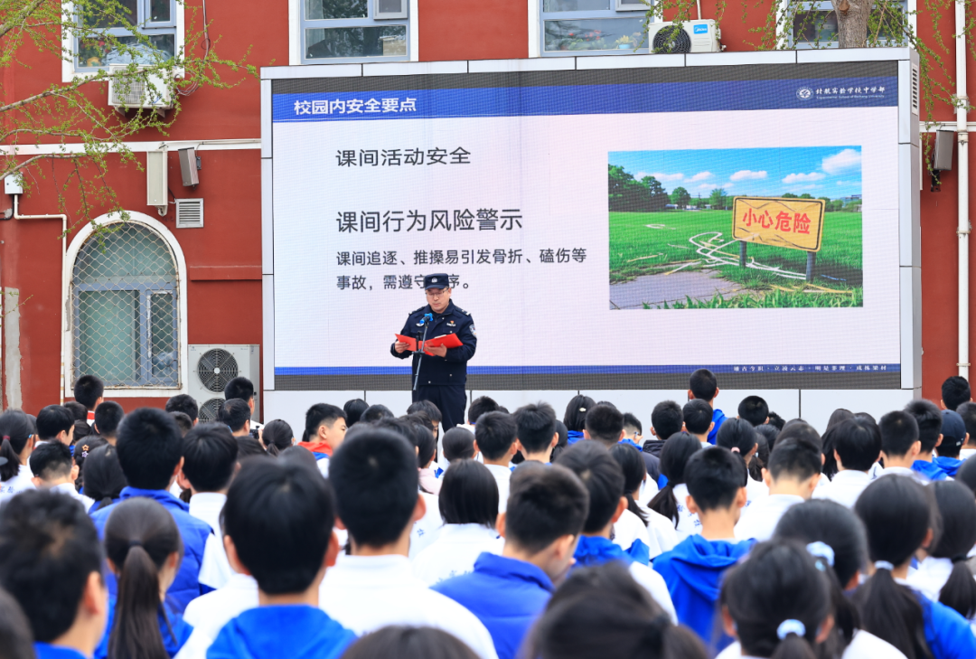 北航实验学校中学部法制副校长、花园路派出所高磊警官在本部升旗仪式上为全体师生带来一堂安全教育课。高磊警官结合真实案例,围绕校园安全、交通安全、法律法规等方面展开讲解。他提醒同学们,课间追逐打闹、楼梯推搡等看似“无所谓”的小事,往往隐藏着巨大风险;新修订的治安管理处罚法对校园霸凌及隐性霸凌行为已作出明确界定与处罚规定,呼吁大家不做施暴者,也不做旁观者。在交通安全方面,高磊警官特别强调了骑车规范,结合即将实施的《北京市非机动车管理条例》,提醒同学们严格遵守年龄限制、佩戴安全头盔,切勿闯红灯、并排骑行。他还告诫大家,未经允许不得擅自使用他人车辆,违法行为将承担法律责任,影响升学与征信。此外,高磊警官还就防溺水、理性处理矛盾等方面提出具体建议,强调“生命只有一次,安全永远第一”。