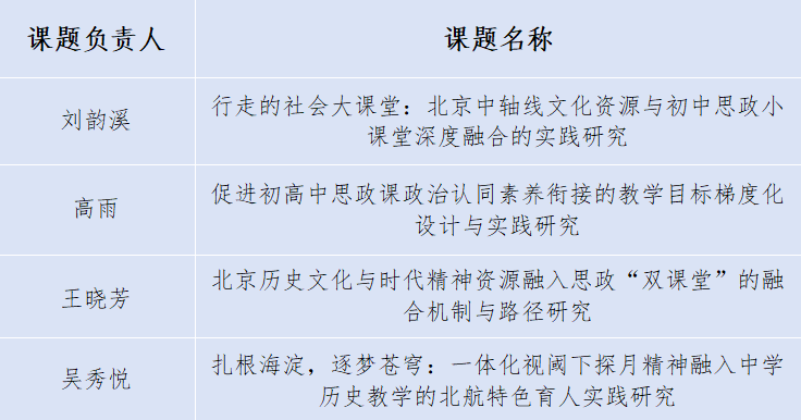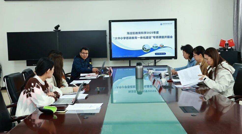 春意渐浓,阳光正好。2026年3月24日上午,海淀区教育科学2025年度“大中小学思政教育一体化建设”专项课题开题论证会在北航实验学校中学部举行。北京市海淀区教育科学研究院霍霖霞老师、吕丹老师,北航实验学校中学部杨文静老师作为特邀评审专家,为课题研究工作提供专业指导。各课题组核心成员共同参加了此次开题论证会。
