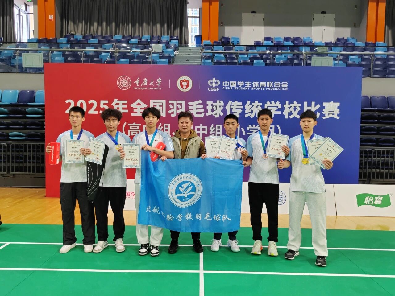 11月15日至16日,北航实验学校5名乒乓球运动员参加了由海淀区教委、海淀区体育局共同主办的“2025年海淀区中小学生乒乓球比赛”,经过两天的激烈角逐,最终包揽高中组男子、女子单打项目冠军、亚军,并夺得男子团体冠军和男子单打第五名的优异成绩。在竞争激烈的男子项目中,北航实验学校展现了强大的团队优势。徐柏和与王梓阔在单打赛中一路过关斩将,成功会师决赛,分别斩获冠、亚军;李圣哲亦有不俗表现,夺得男子单打第五名...